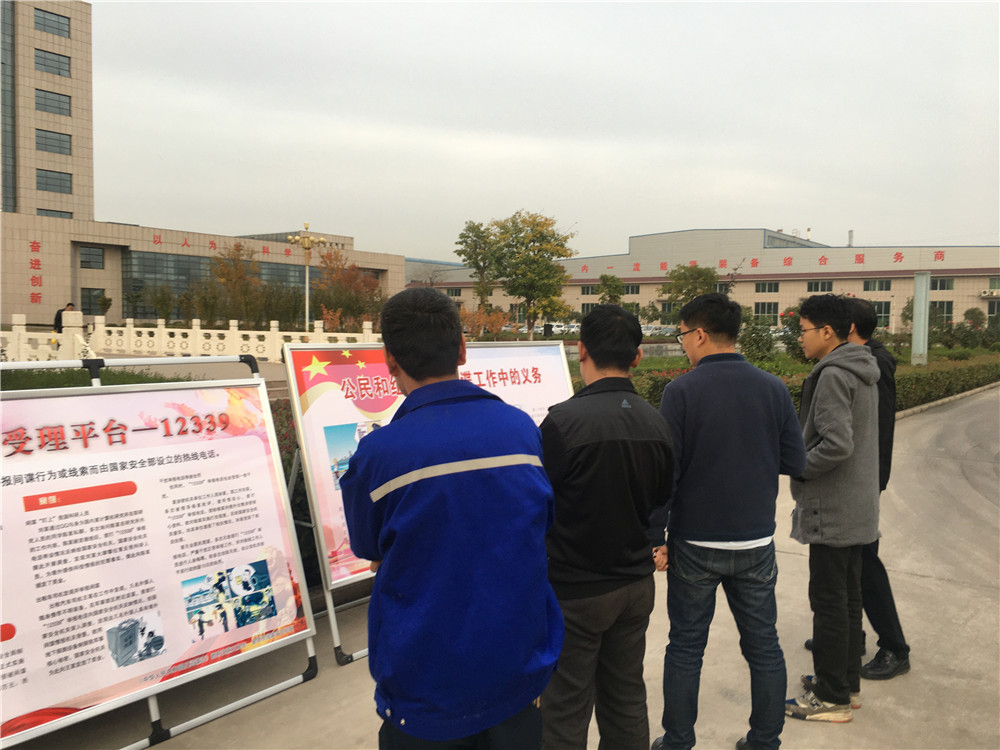 公司通過LED屏滾動播放宣傳標語,大門兩側懸掛橫幅標語,制作《反間諜法》宣傳版面,發放《反間諜法》宣傳彩頁700余份等多種形式的廣泛宣傳,營造了“國家安全,人人有責”的濃厚氛圍,進一步提高員工反間諜安全防范知識,使維護國家秘密,保護國家安全意識不斷加強。