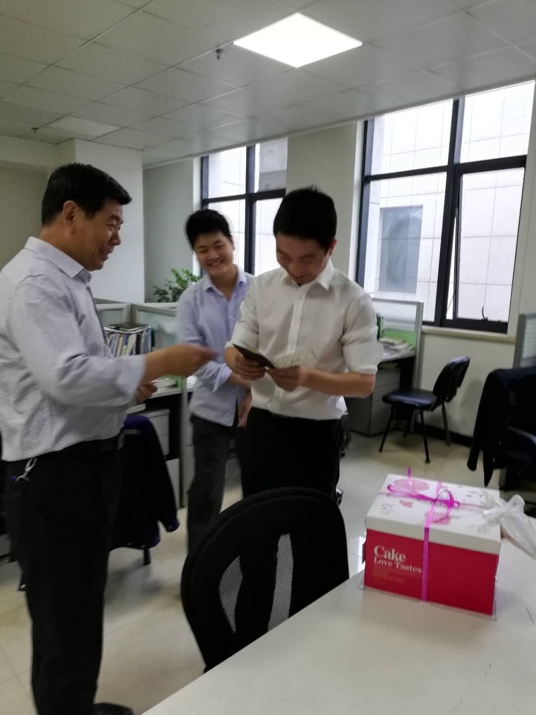 5月10日上午8時許,公司工會主席路建存攜帶生日蛋糕和生日賀卡走進車間,親自將生日禮物送到當天過生日的員工手中,并代表公司董事長、總經理表示生日祝賀。當路主席把生日蛋糕送到員工手中時,他們感到非常驚訝,有的員工本人都不記得今天是自己生日,而公司把生日禮物送到了手中,員工們激動的說:非常感謝公司領導的關懷。